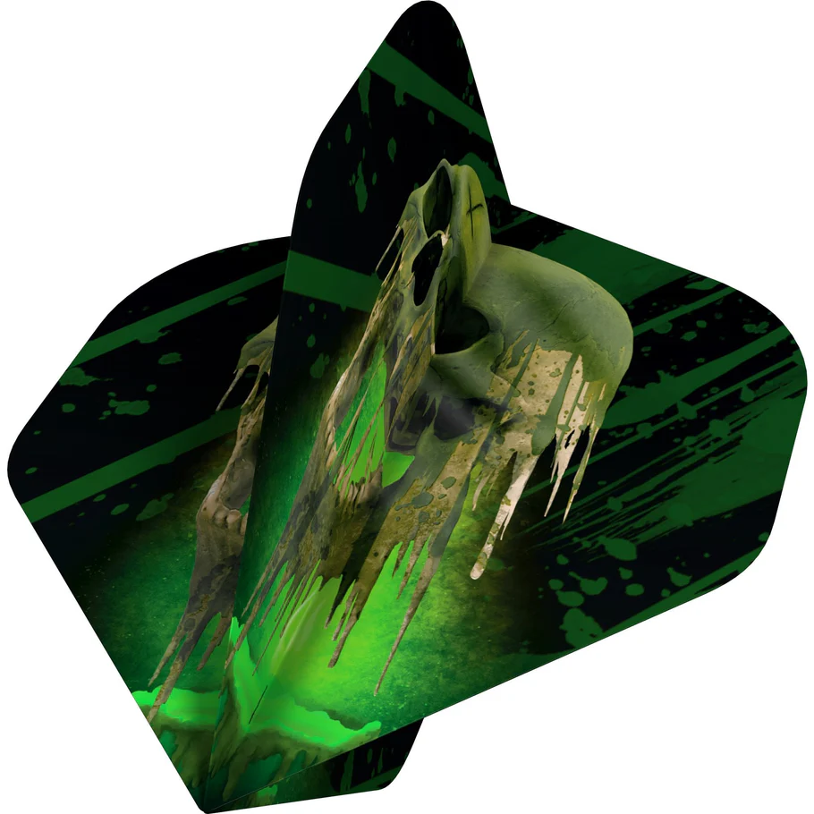 Thisย Melting Skullย flight design has been hand drawn by artist Giulietta Cox exclusively for Designa Darts and is part of the Horror Show Collection. The eight gruesome designs can be purchased together as a collection.