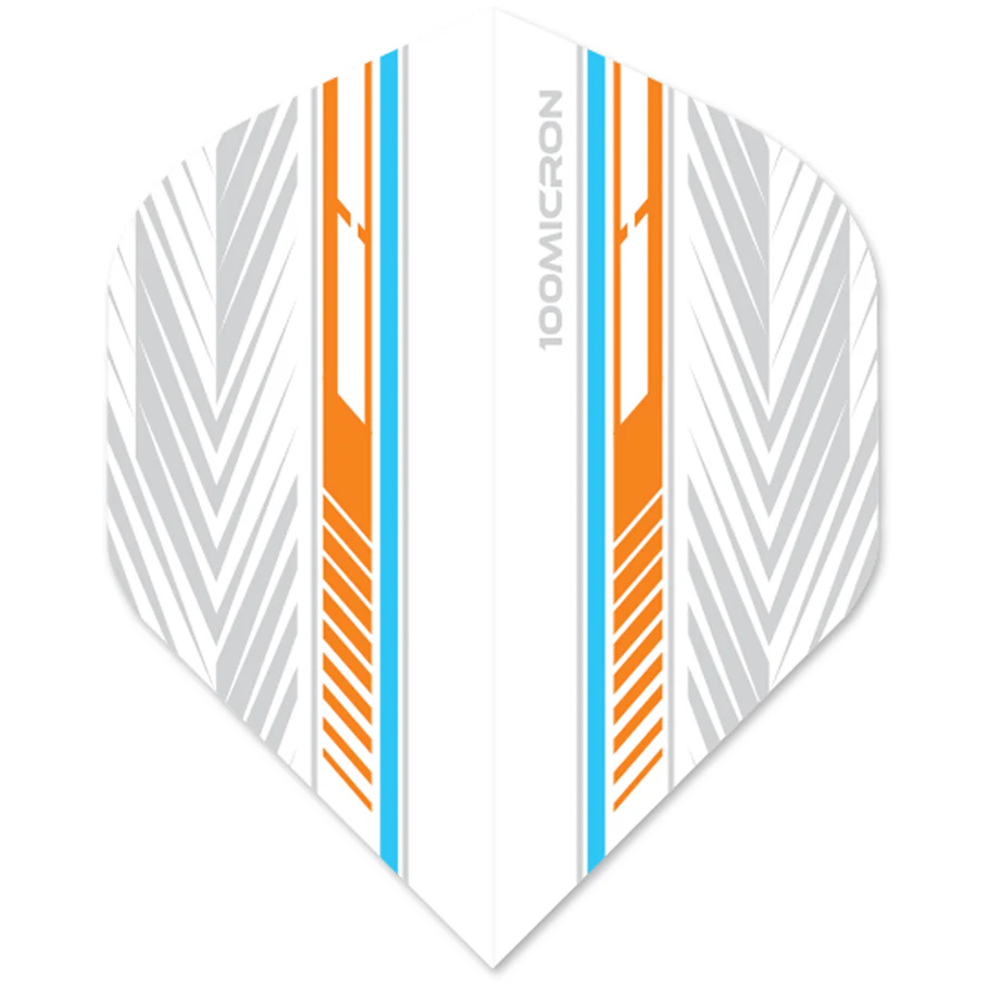 An essential for your darts case, these flights feature a blue and orange colourway with a grey feathered design to the edge of the fins. Each pack contains 3 flights.