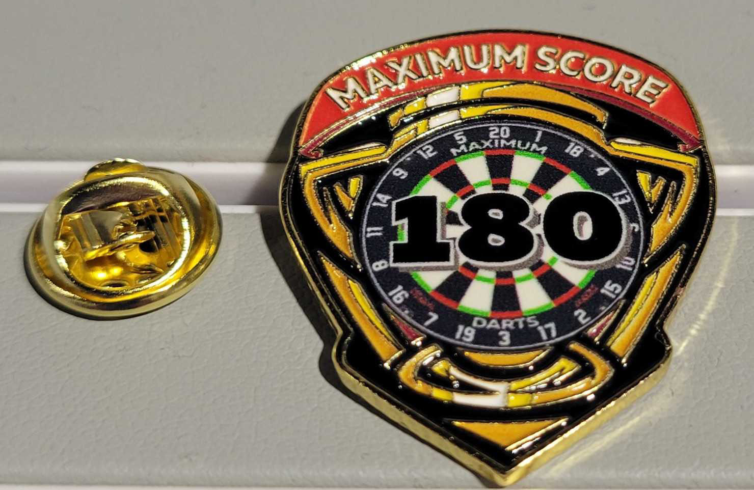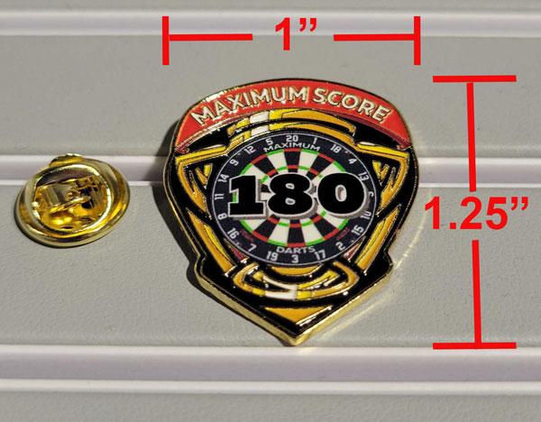 The pin is securely fastened to clothing by the sturdy clasp included. These badges look great on dart cases.