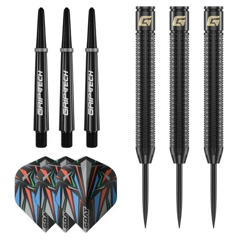 GOAT Athlete Black Brass contains: 3 Darts, 3 Dart Flights and 3 Dart Shafts.