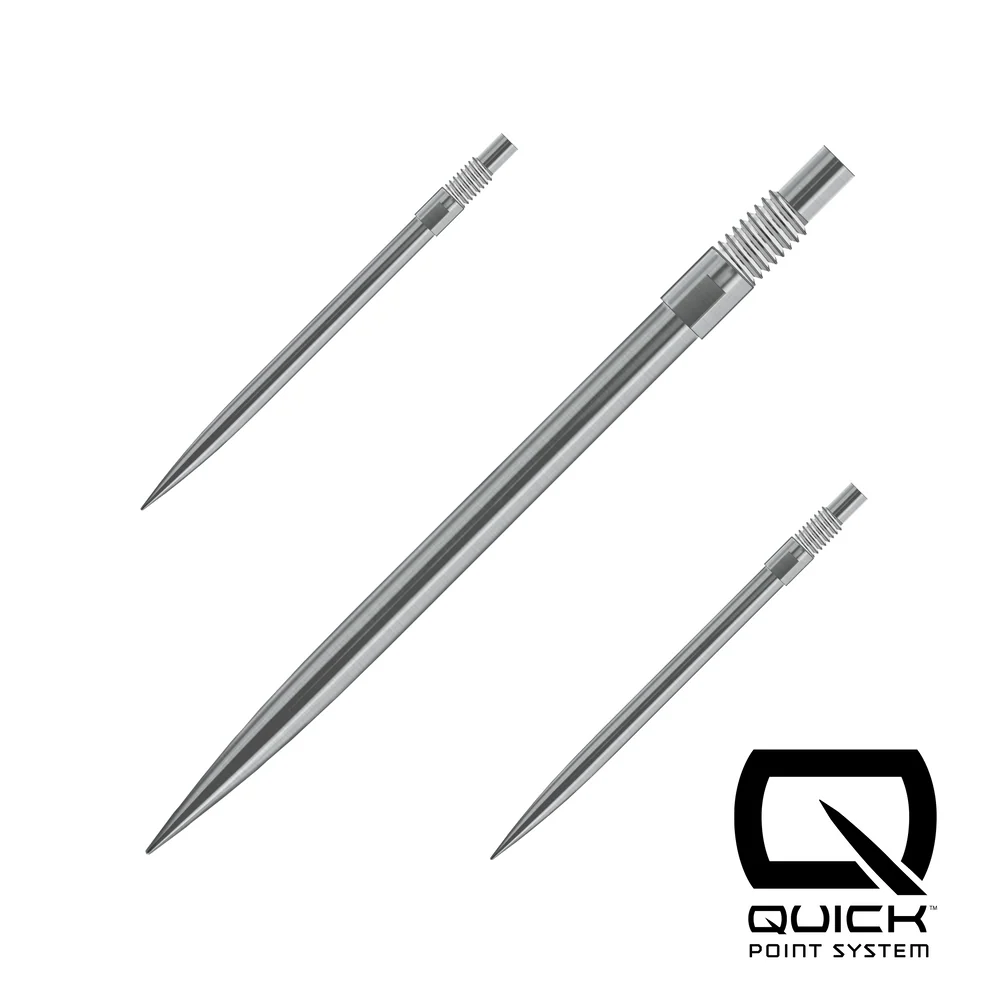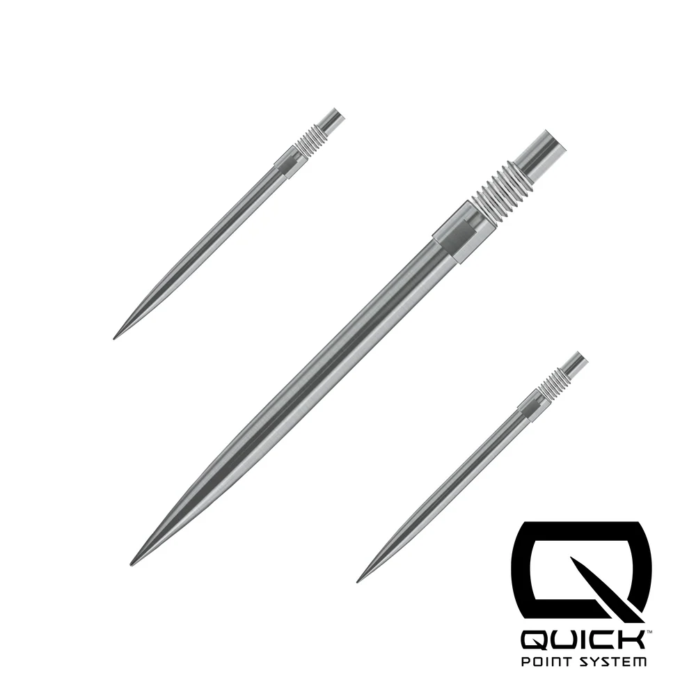 Quick Points by Harrows Super Strong. No Break Point. Harrows Quick Points are engineered to give players maximum flexibility with minimal effort. Using the simple tool included with every Quick Point dart, you can switch point lengths or styles in seconds, no fuss, no downtime. Crafted with precision and built for strength, durability, and seamless integration, Quick Points feature a no break point design for ultimate reliability under pressure. Initially available in 30mm, 35mm, and 40mm lengths, and in sleek silver or black finishes, Quick Points let you fine-tune your darts to match your game. Quickpoints: Seamless swaps. Superior performance. Zero break points. *Compatible with Screw point dart barrels only*