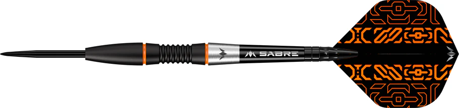 Unearth new possibilities to your game with the Mission Horizon Darts! These darts are made of a premium 95% tungsten material and are complete with a black PVD and orange coating on the barrels. The centre section of the fully contoured barrel has a micro scallop with radial grooves with two small smooth sections either side, all finished with a black PVD coating. Two orange painted highlighted rings separate the centre of the barrel from the smooth rear and front sections. The full radius front section of the barrel has a black PVD coating and leads to a smooth black point, with a smooth natural tungsten section at the rear complete with a laser-etched Mission logo. The Horizon dart is complete with a set of short black Mission Sabre shafts which tightly grips the signature Mission Horizon flights. Available in steel tip (22g and 24g) and soft tip (18g).