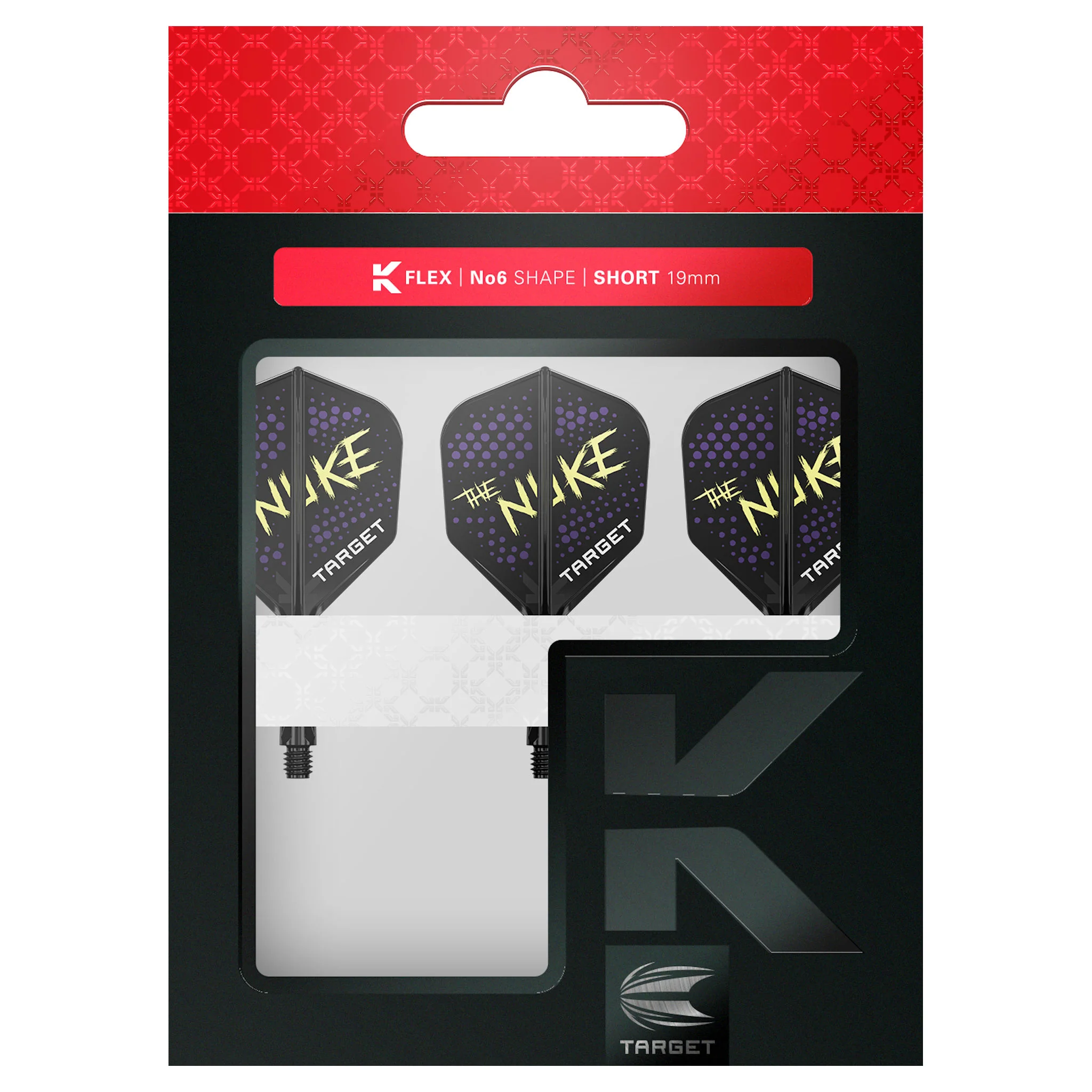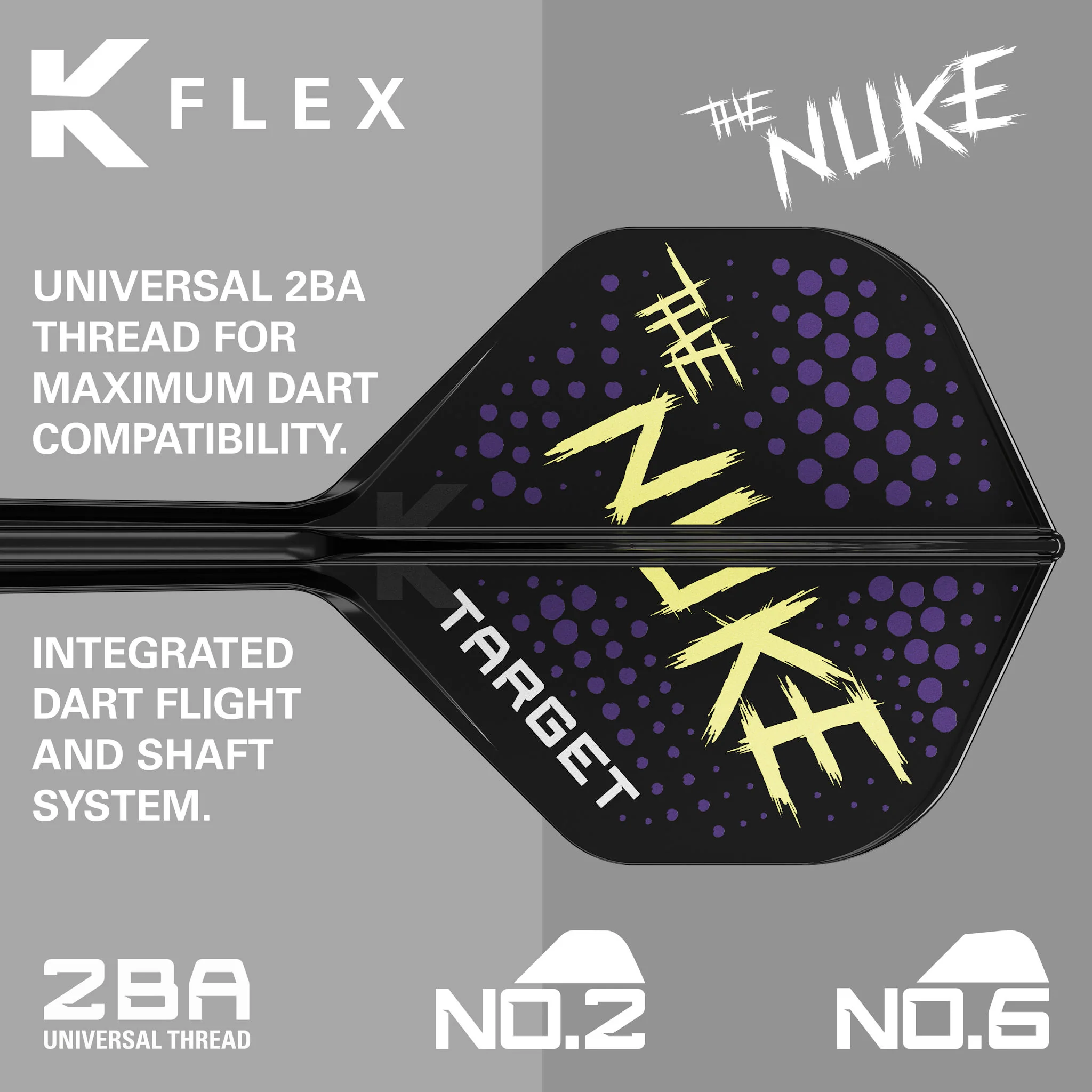 Introducing the player-edition Luke Littler K-Flex integrated flight and shaft system. Created in collaboration with the โNukeโ, featuring his signature logo in fluorescent yellow and striking purple.