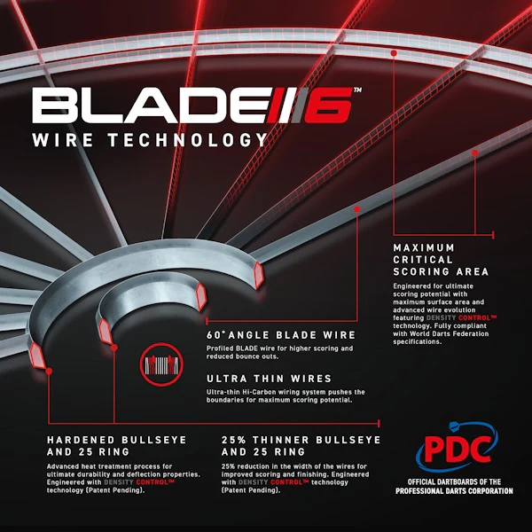 The Blade 6 Triple Core dartboard celebrates the latest PDC Exclusive Endorsement, where the worldโs best professionals will now play onย the most technically advanced dartboard available, creating thousands of new stories..