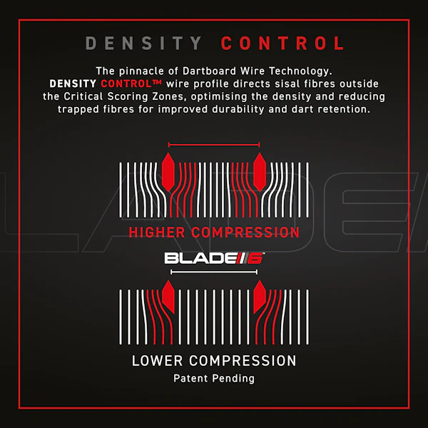 Bladeโs pioneering web design features the latest โDensity Controlโขโ wire for optimum fibre density and improved dart retention in the double, treble and bullseye zones, for maximum scoring power.ย ย