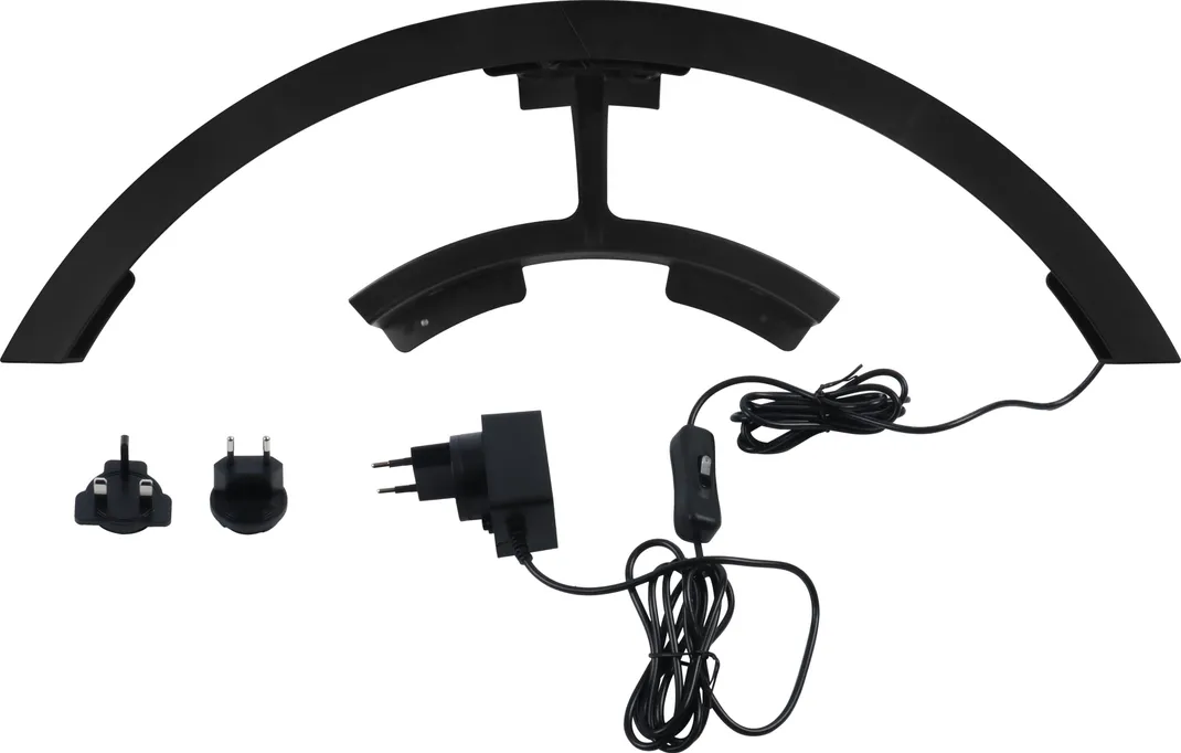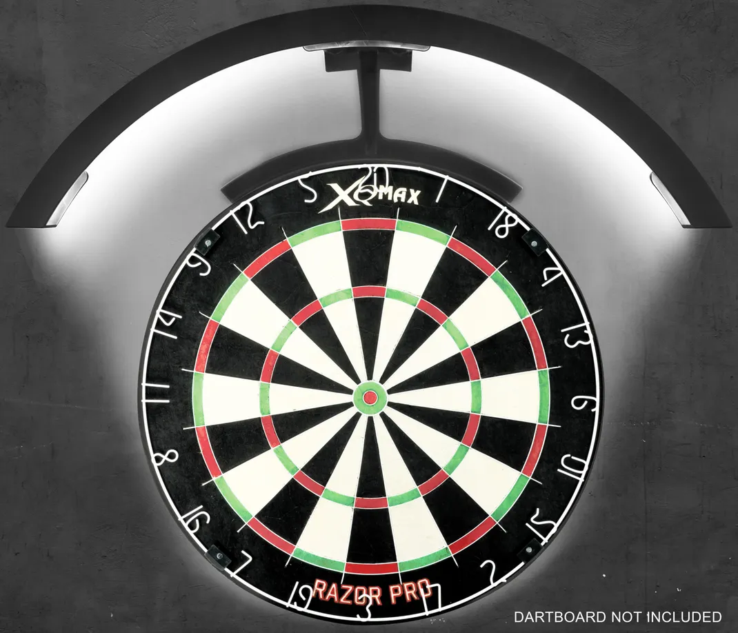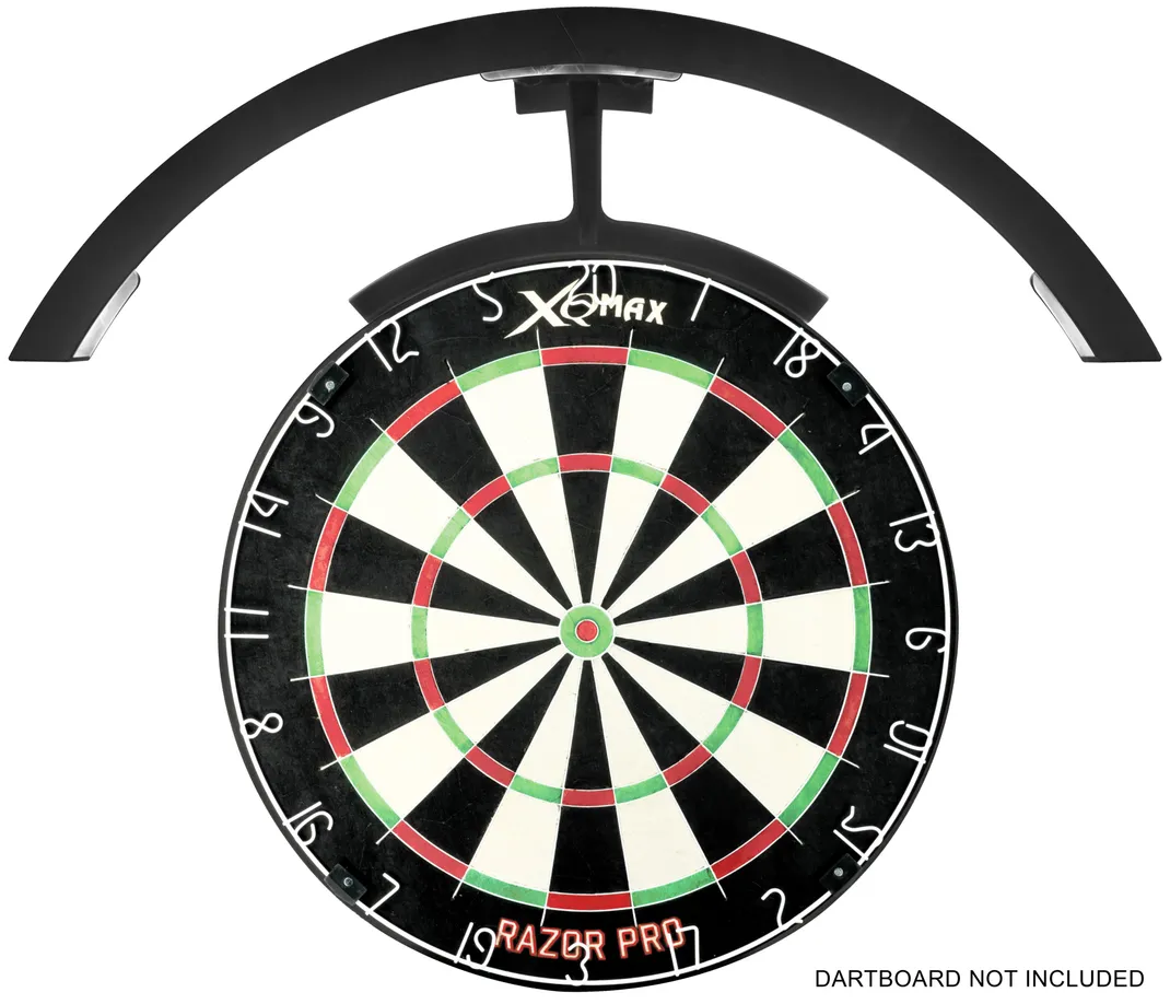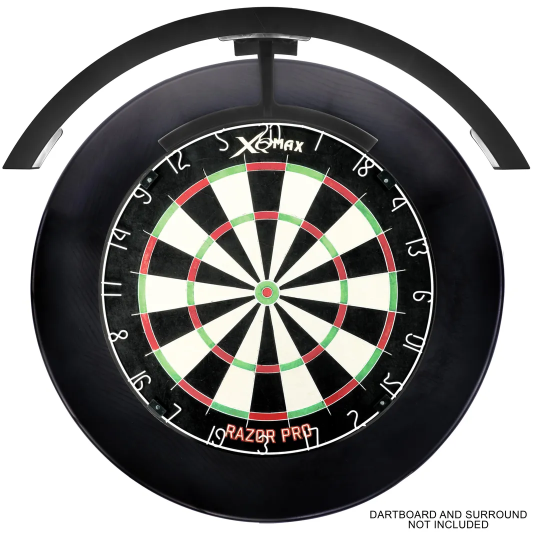 Illuminate your dartboard with precision using the XQMax Saturn 120 LED ring packed in a coloured box, designed to enhance visibility and elevate your game. This sleek black ring features 14 high-intensity LEDs per section, delivering a powerful 1000 lumens of brightness for optimal clarity. 14 LEDs per section 1000 lumen. Adapter included with 3x plugs (EU, US, UK). On/Off switch. ABS plastic. 2 sections, 1 foot with 2 magnets. 2 end caps. 2 feet connectors. Cable = 300cm.